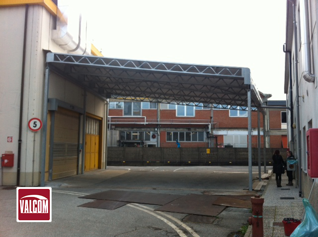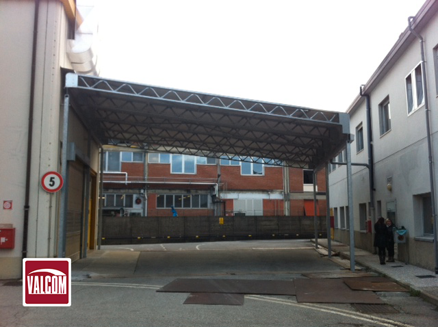 Valcom ha realizzato una tettoia monopendenza di circa 100 m² che copre tutte le operazioni di stoccaggio merci e le protegge da eventuali intemperie. Le autovetture possono giungere direttamente davanti ai portoni d’ingresso del magazzino per via delle aperture laterali della tettoia che ne garantiscono la massima accessibilità.