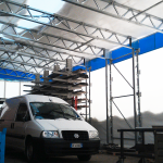 Il telo di copertura, in robusto PVC, di colore bianco, garantisce il passaggio naturale della luce solare. Il risparmio energetico è dunque garantito! Le abbondanti nevicate degli ultimi giorni non sono state un problema per lo svolgimento dei lavori… Il capannone, coperto di neve, ha permesso di proteggere merci e mezzi che altrimenti non avrebbero trovato spazio nel precedente magazzino.